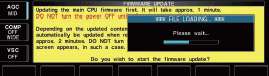 12. Podczas ładowania oprogramowania firmware z pendrive USB wyświetlany jest dialog jak pokazano po lewej stronie. Tekst na ekranie:*** FILE LOADIND... *** - ładowanie pliku