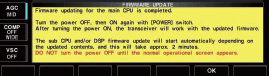 W zależności od zawartości aktualizacji, sub CPU i/lub DSP firmware będzie automatycznie aktualizowane kiedy zostanie przeładowany (zresetowany) transceiver i zajmie to około 2 minut.